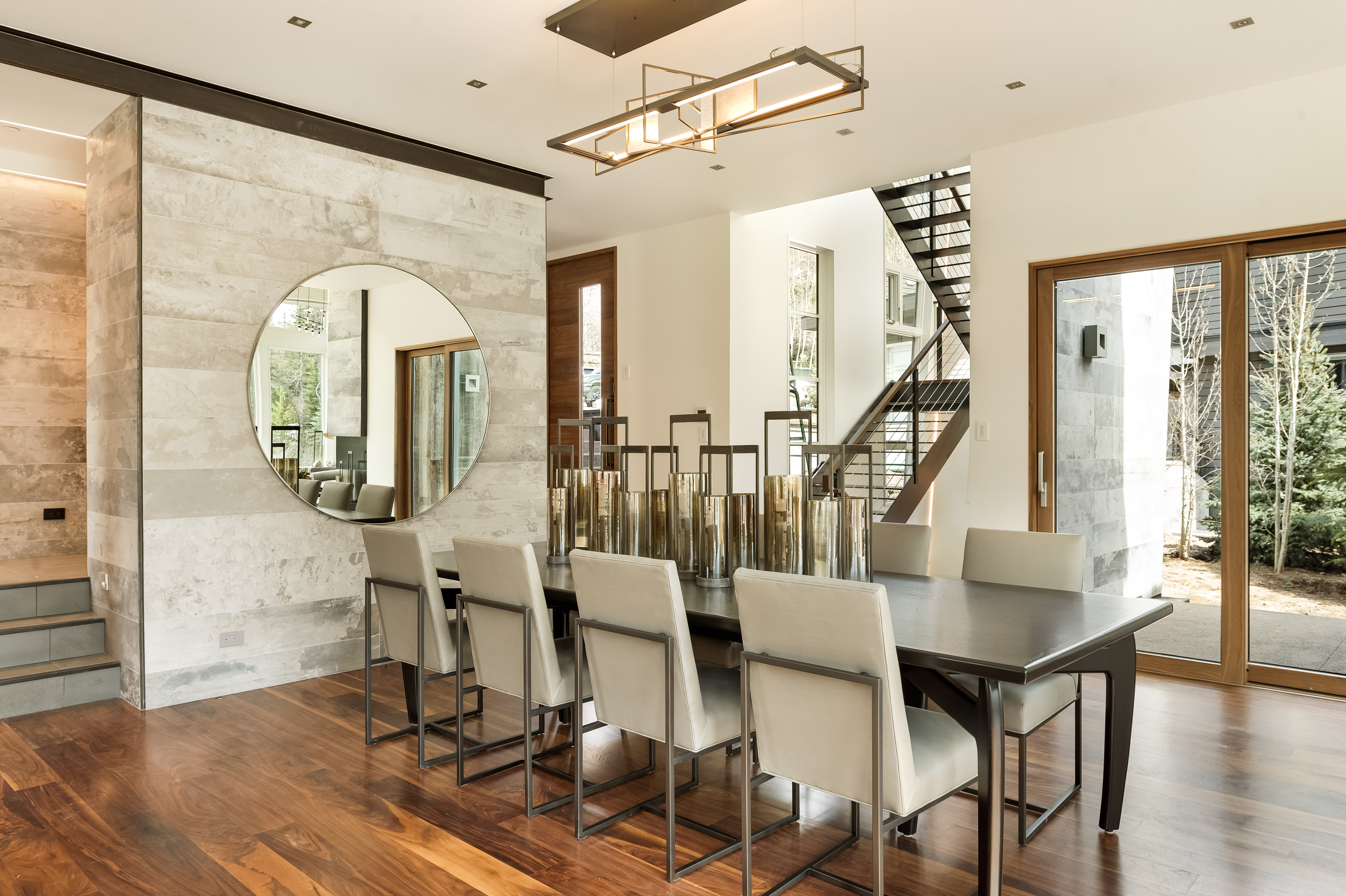 Gorgeous open living areas that highlight a beautiful contemporary design and floor-to-ceiling windows overlooking the Roaring Fork River. Light & bright great room featuring a custom stone gas fireplace and beautiful views of protected open space extending to the spacious deck with fire pit. The gourmet kitchen boasts all new Wolf appliances, marble countertops, custom cabinetry, breakfast bar and adjoining dining area with seating for ten. The top floor master suite enjoys beautiful views of the river, a gas fireplace and walk-in closet with private laundry. The master bath features double vanities, steam shower, soaking tub and sleek marble accents. The extensive lower level media room includes a large seating area with flat screen TV, wet bar with wine storage, custom ping pong table and full bath. Gracefully appointed guest suites with beautiful en suite baths. Exclusive serene location just a short walk or bike to town.