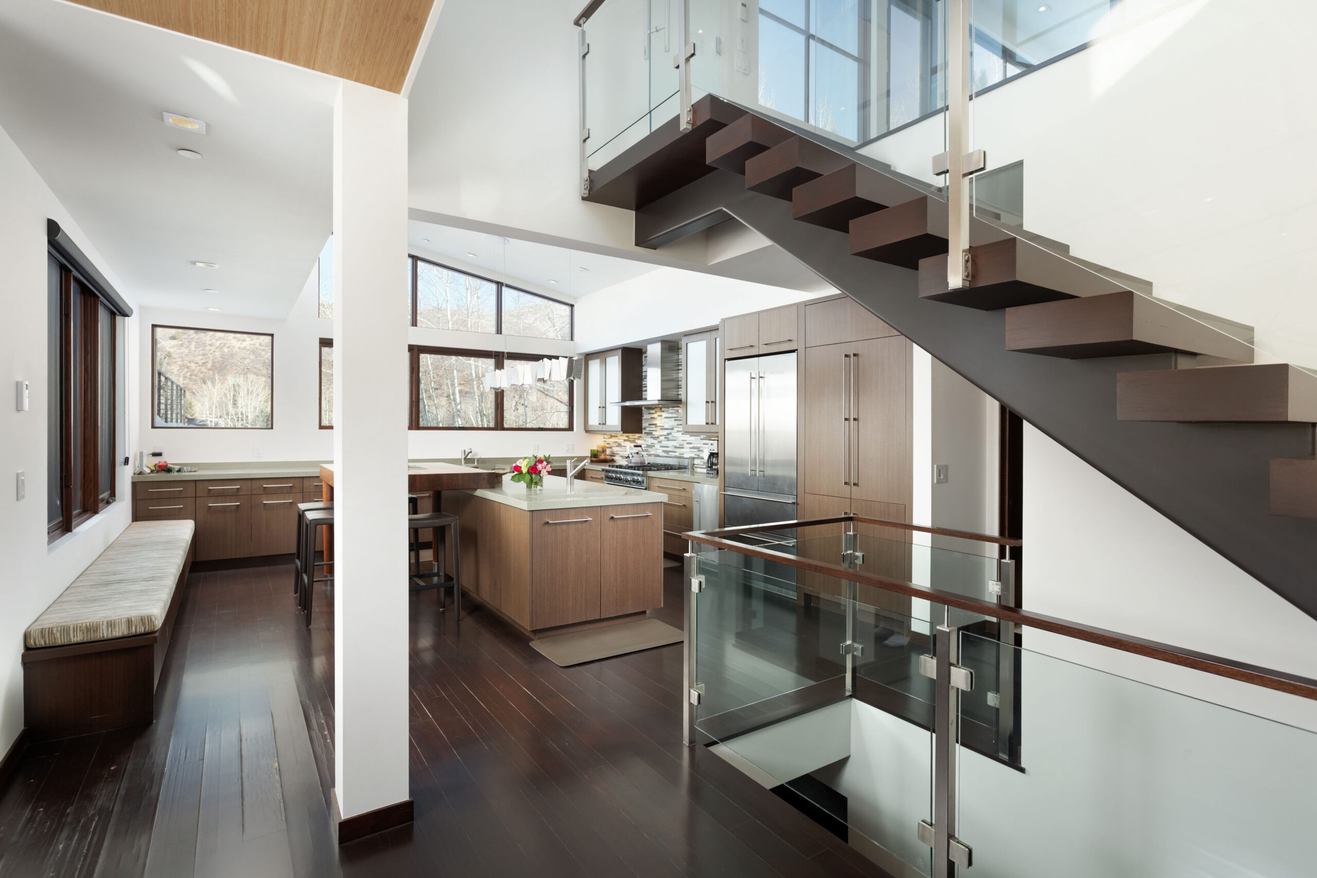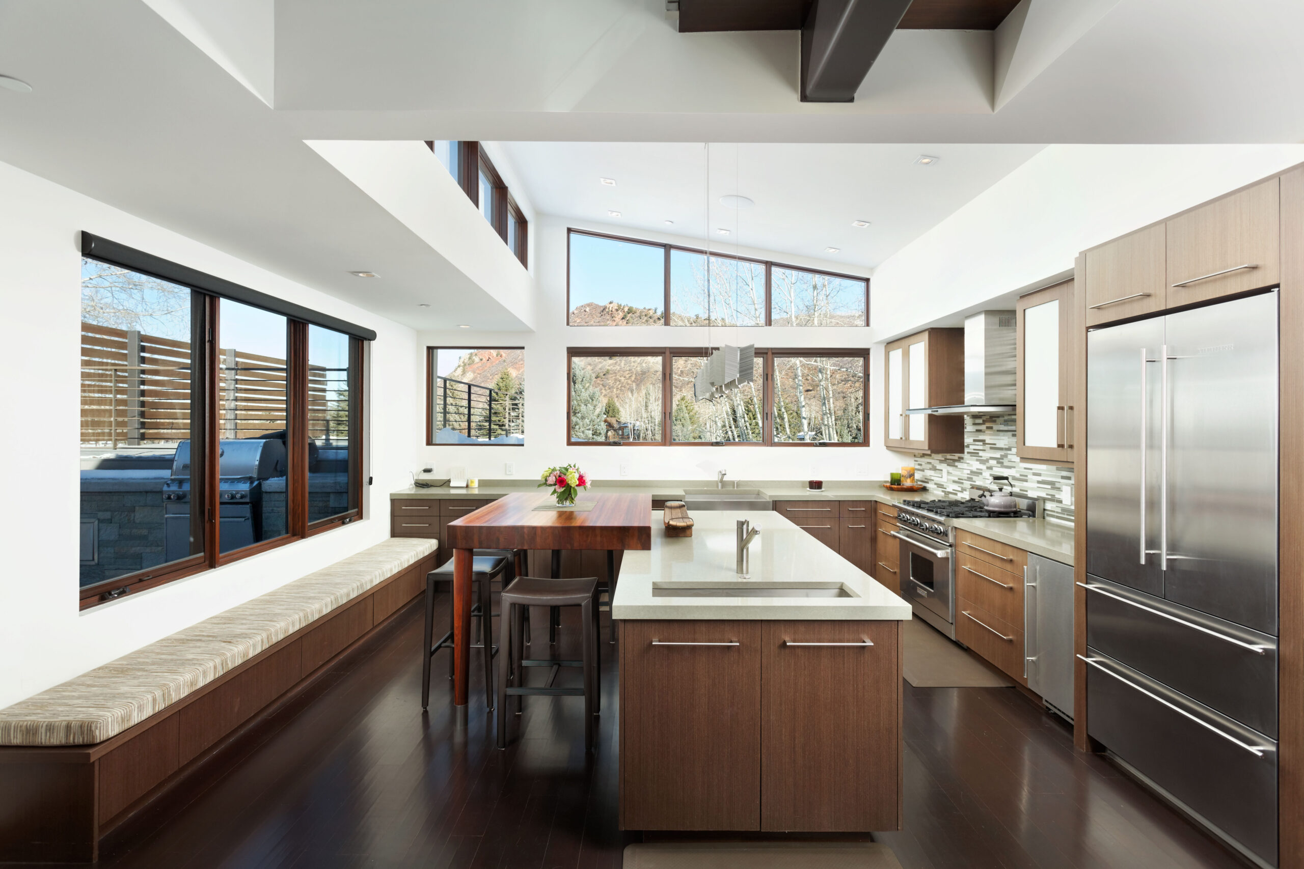 This is it! All the bells and whistles within biking distance to downtown and easy access to all mountains and the Rio Grand Trail. Overlooking the Aspen golf course with panoramic mountain views, large outdoor entertaining areas include multiple decks and a yard, this home is a unique opportunity. Architect Scot Broughton designed dynamic architectural angles, high ceilings and opulent living areas with abundant natural light to provide unobstructed views of the surrounding beauty, perfectly situated for sunset splendor. Top floor private glass office perfect for working remotely. Large indoor pool. Luxurious jetted tub and steam shower offered in en suite Master bath. Caretaker unit with private entrance. This opportunity is not to be missed. Directions: North on Cemetery Lane from Main St. West on Sierra Vista Drive. 1460 Sierra Vista located near end of cul-de-sac on right.