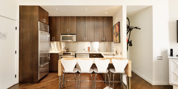 *Gourmet kitchen with stainless steel appliances, marble countertop and breakfast bar.