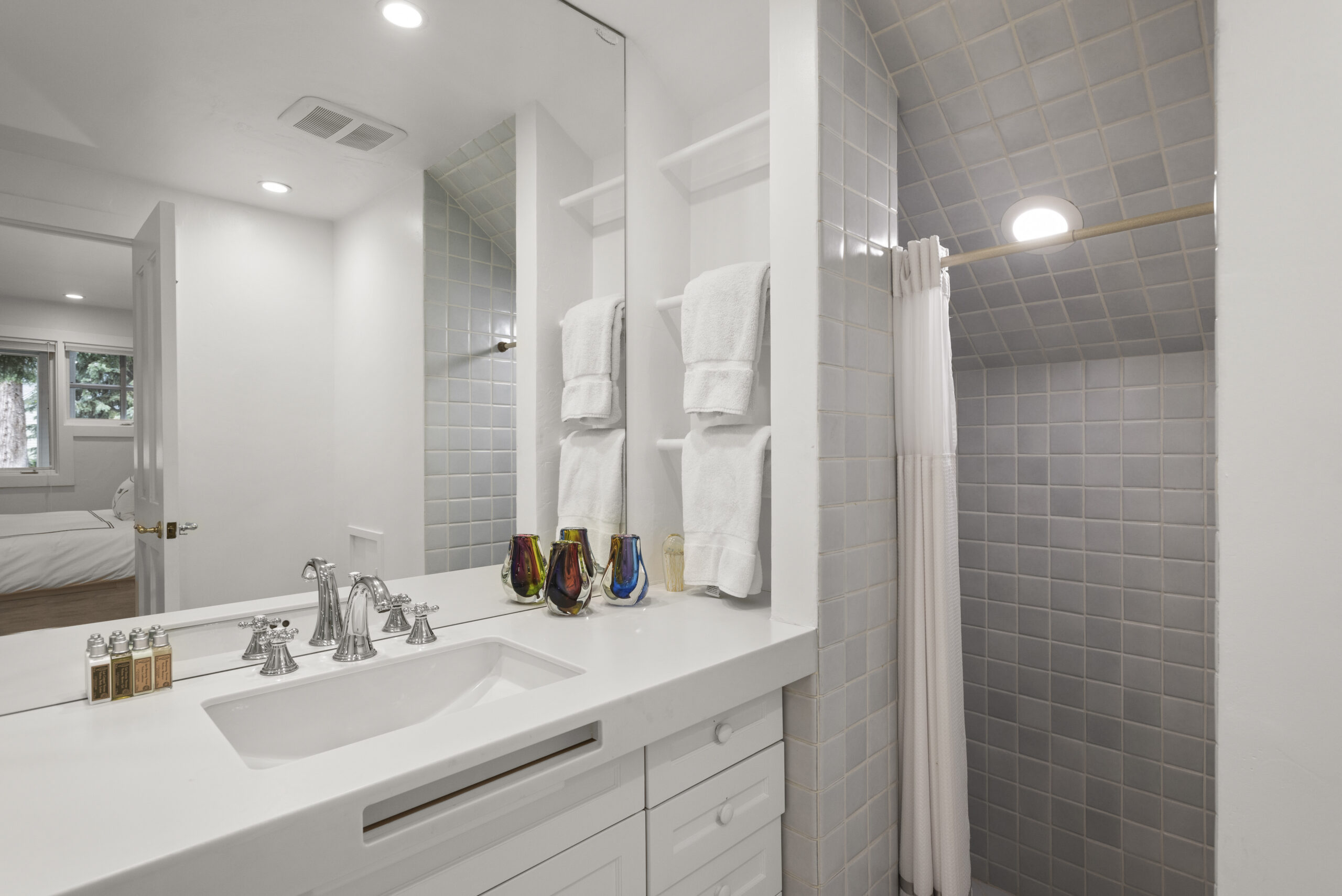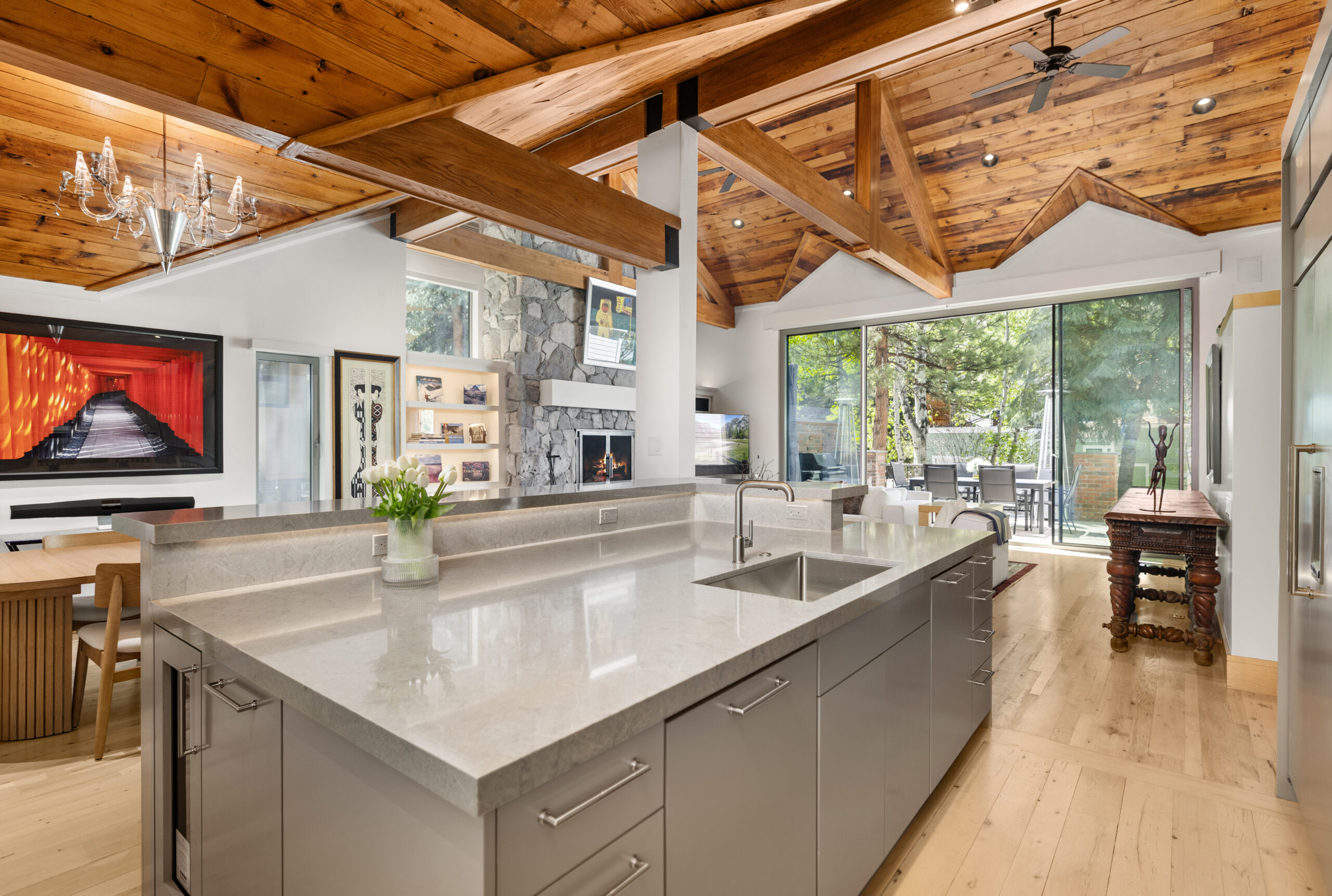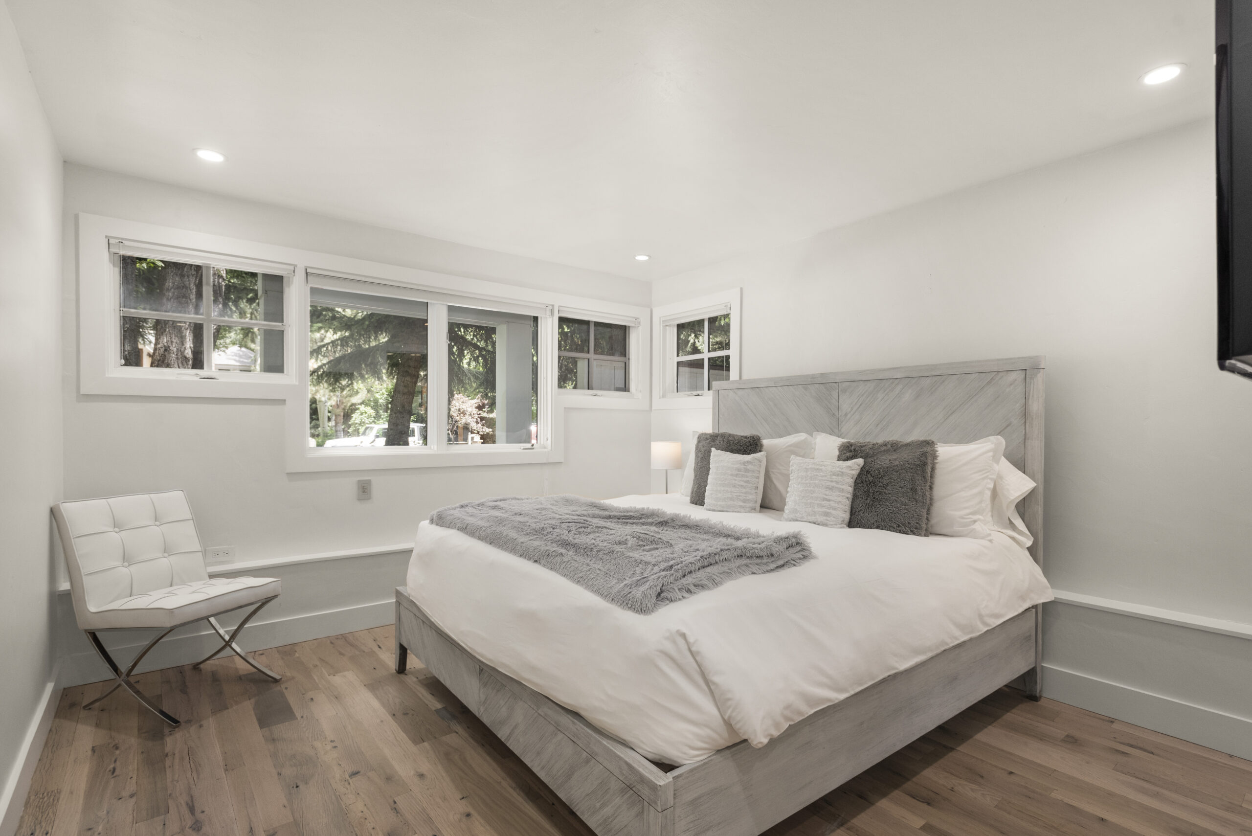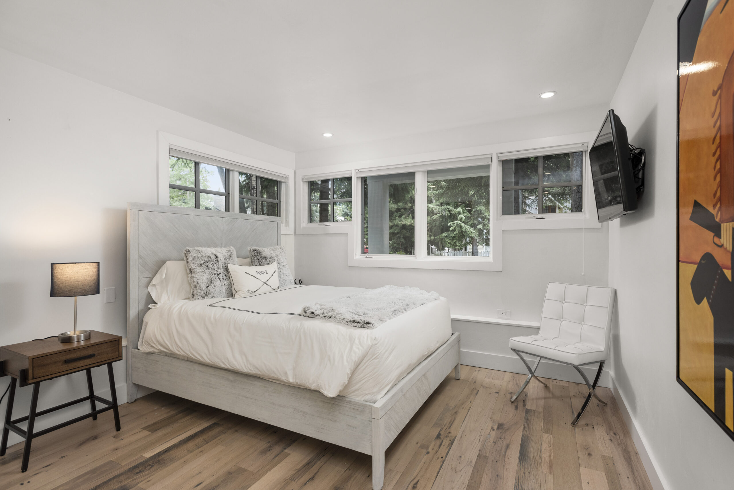 This newly renovated gem sits on a generous corner lot in Aspen’s coveted and tranquil West End neighborhood. Thoughtfully redesigned to embrace indoor-outdoor living, the light-filled main level features soaring vaulted timber ceilings, a wood-burning fireplace, and floor-to-ceiling slider doors that open to sun-drenched patios. The brand new gourmet kitchen includes Caesarstone countertops, custom cabinetry, and top-of-the-line appliances, seamlessly connecting to the open dining and living areas—ideal for entertaining and everyday comfort. Central A/C keeps the main level comfortable year-round, while expansive windows frame stunning views of Aspen and Shadow Mountain. The outdoor spaces are truly remarkable, with multiple gathering areas, a large patio for dining and grilling, a fire pit, and a recirculating stream set among mature Aspen trees and vibrant perennial gardens. The home’s southern exposure ensures sunshine throughout the day, a rare advantage in the West End. Just a few steps above the main living area, the elevated primary suite enjoys privacy and views of the landscaped patio below. It includes a gas fireplace, its own sunny balcony, and a luxurious spa-style bathroom with a jetted soaking tub, walk-in shower, and dual marble vanities surrounded by wraparound windows. Unlike most homes in the area, this residence is entirely above grade, allowing even the lower-level guest suites to enjoy garden views and direct access to the backyard and hot tub. Additional features include generous owner storage, cedar-lined closets, a large crawlspace, and a beautifully appointed main-level office with floor-to-ceiling windows facing the quiet corner lot. This special property also offers a private bike path out front, preventing overflow parking from the nearby Music Tent and preserving the home’s peaceful atmosphere. The front yard is nourished all summer long by the flowing Salvation Ditch, enhancing the lush gardens. With potential to expand by adding a subterranean level and a unique alley configuration that allows for four additional parking spaces beyond the two-car garage, this rare West End offering combines timeless design, exceptional light, and future flexibility. A true Aspen treasure not to be missed.