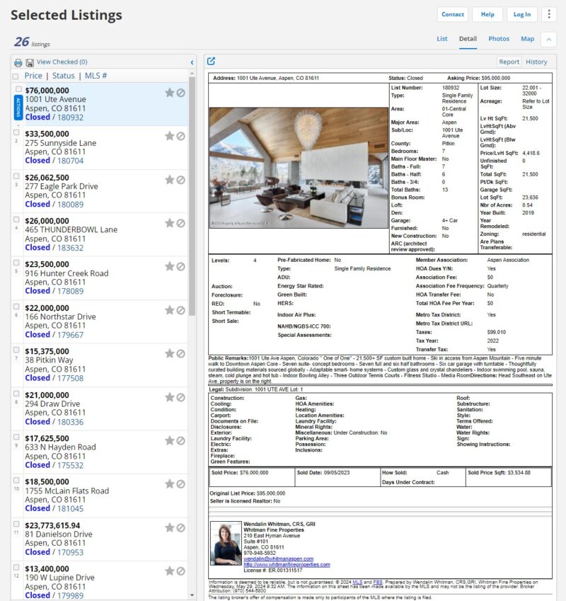 In summary, Aspen’s special and well-located, top-of-the-market properties will hold their appeal for very high-end Buyers looking to diversify. No matter the transaction, navigating this market demands a nuanced understanding and strategic flexibility. As your broker, I am dedicated to providing you with the most informed, flexible, and effective representation in this evolving landscape. Please feel free to reach out at your convenience to explore these topics in further detail. Below please find a link to the sales, which I believe offer a more accurate reflection of the market than what is being featured in the press or from national firms. In this dynamic environment, I am very proud to be Aspen’s top-selling Independent Broker for decades and I am confident that I am positioned where I need to be. Thank you for taking the time to consider my insights.